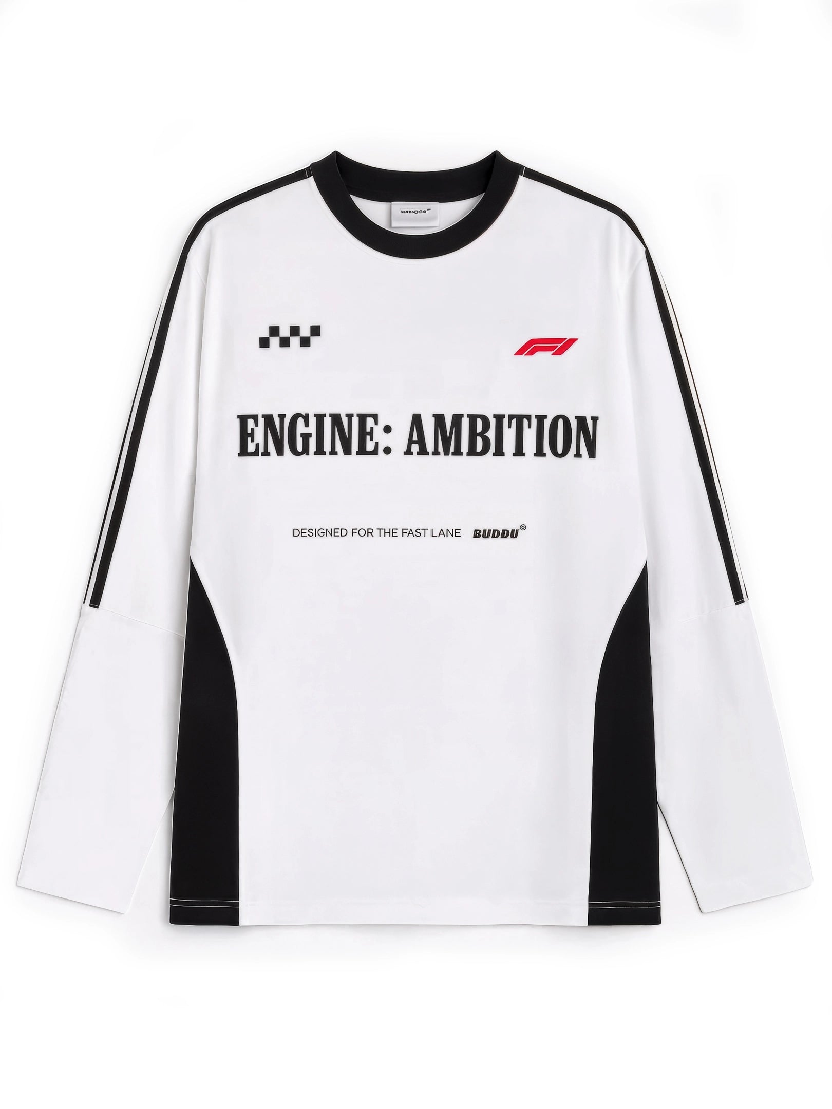 Motorsport-style longsleeve with an expressive Engine: Ambition print.