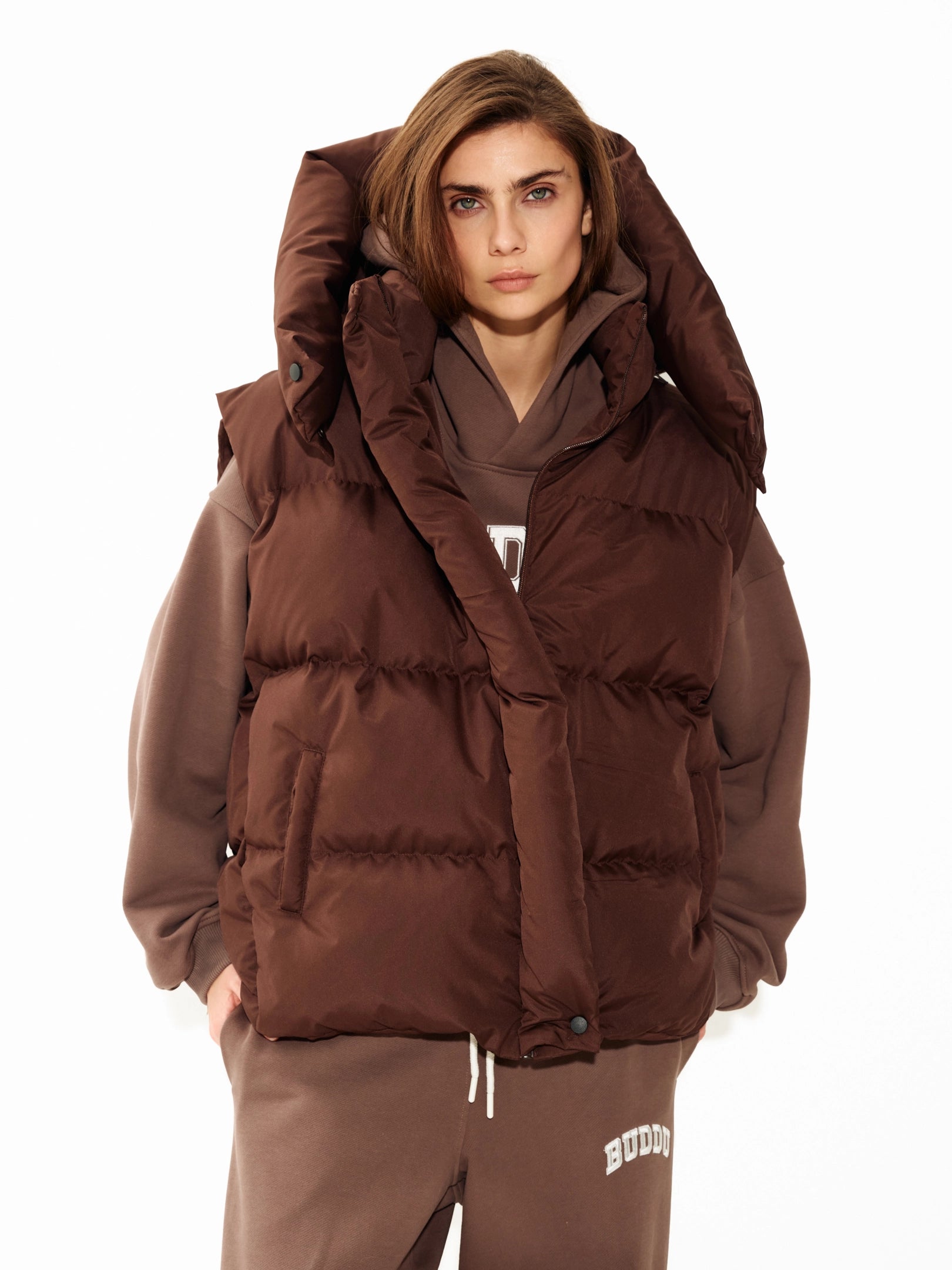 This oversized vest features a detachable hood. Made with natural down filling, it provides excellent thermal insulation without adding extra weight, making it perfect for cool weather. The water-repellent surface protects against moisture and wind, keeping you warm and dry in various conditions. The detachable hood adds versatility, allowing you to adjust the vest based on the weather.