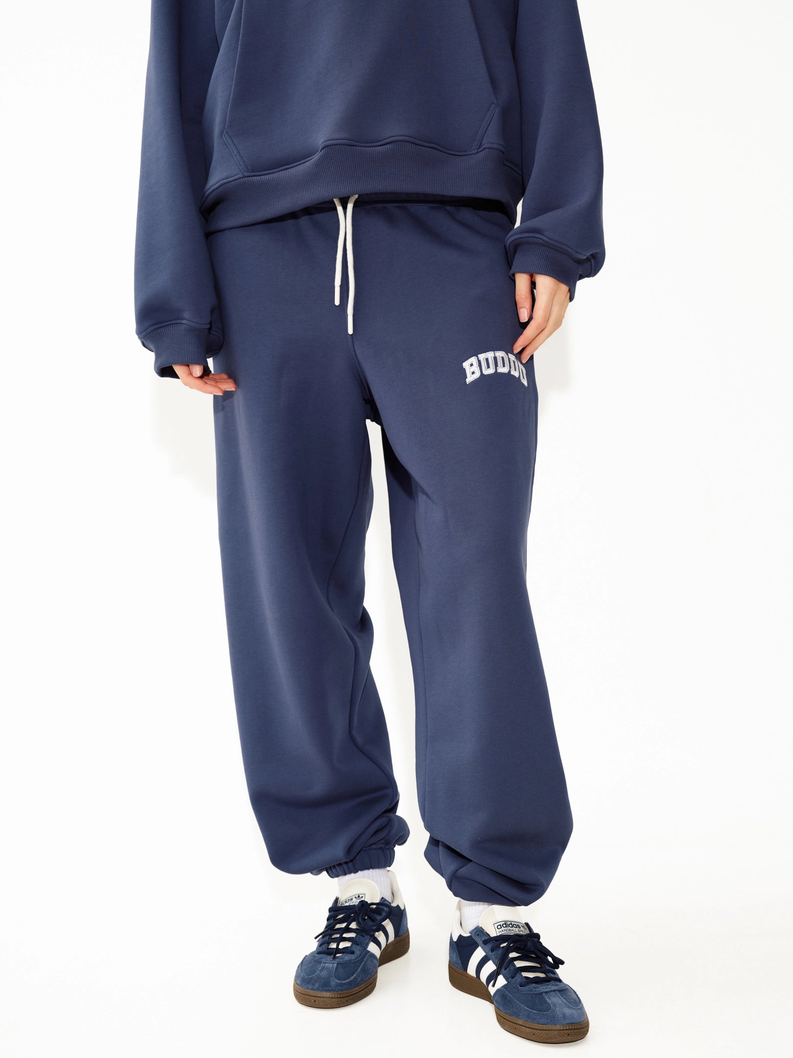 The straight-cut joggers are made from soft fabric and include comfortable pockets and an adjustable lace-up belt for a personalized fit.
