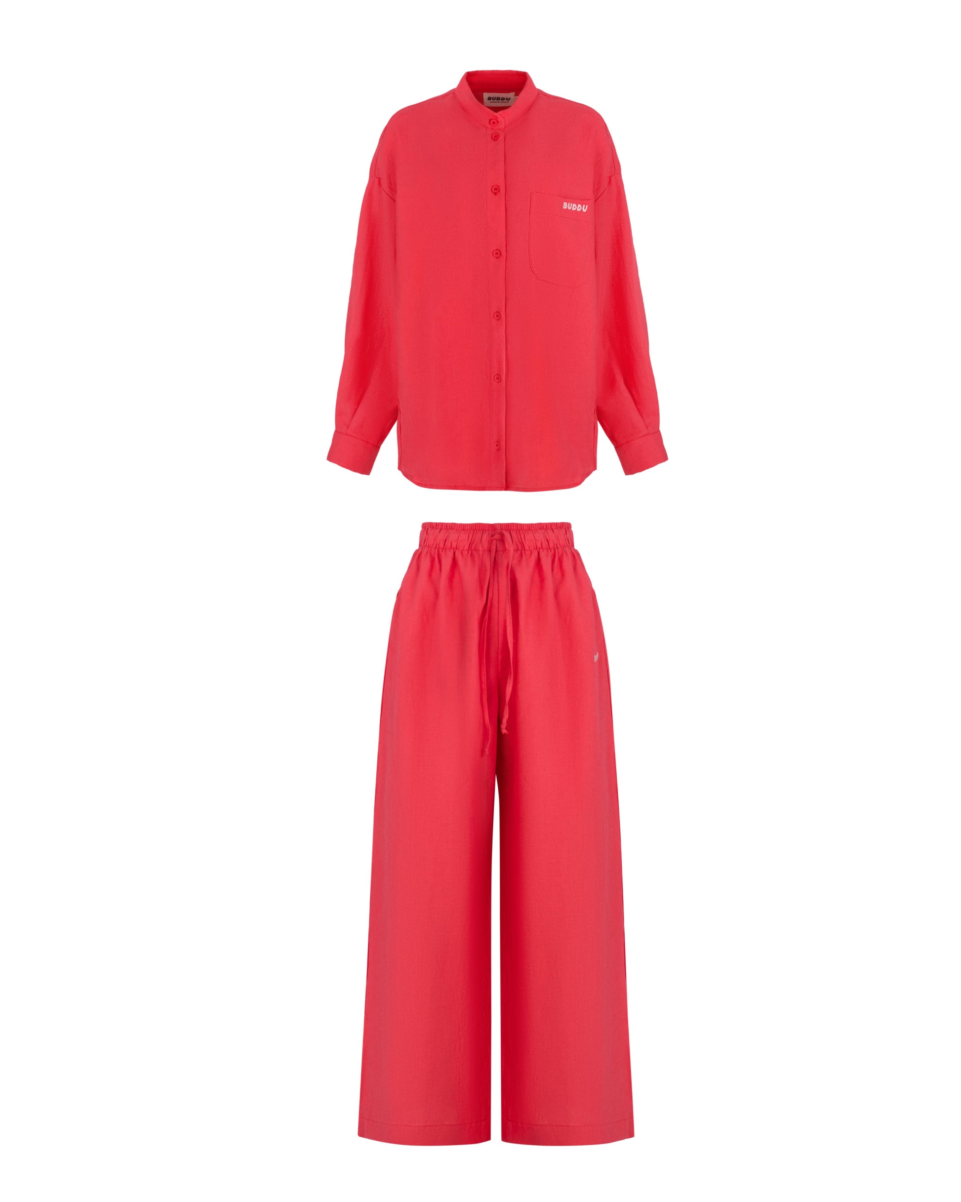 Oversized button-down shirt with a short stand-up collar. Thanks to the free cut, the shirt easily adapts to any figure, providing freedom of movement and a relaxed look. A breast pocket with an embroidered logo attracts special attention, which adds an accent to the model. This shirt is great for creating formal looks as well as for casual style, combining elegance and everyday comfort.