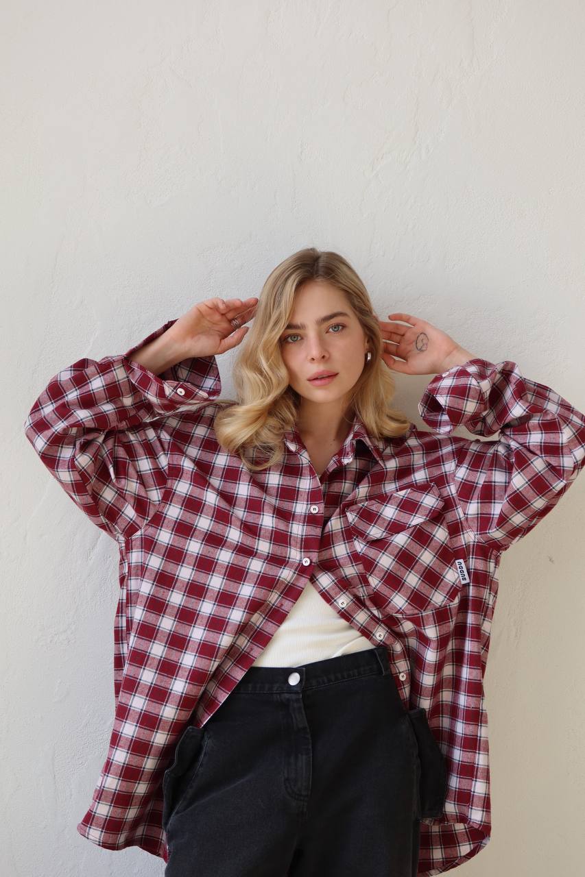 This plaid oversized cotton shirt features a comfortable cut, making it ideal for everyday wear. It includes a chest pocket, a fold-down collar, and long sleeves with cuffs that contribute to its classic style. This shirt is perfect for casual chores or informal meetings. It pairs effortlessly with jeans, trousers, or shorts, adding a relaxed touch to your outfit.
