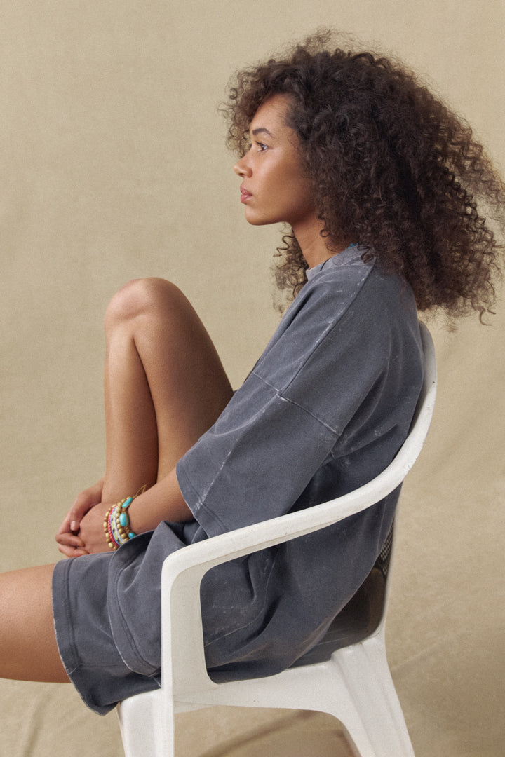 This oversized T-shirt is made from 100% cotton and features a loose cut for ultimate comfort, making it the ideal choice for any day. The oversized style adds a relaxed feel, allowing for versatile styling options. Additionally, the special treatment of the fabric gives it a unique boiled effect.