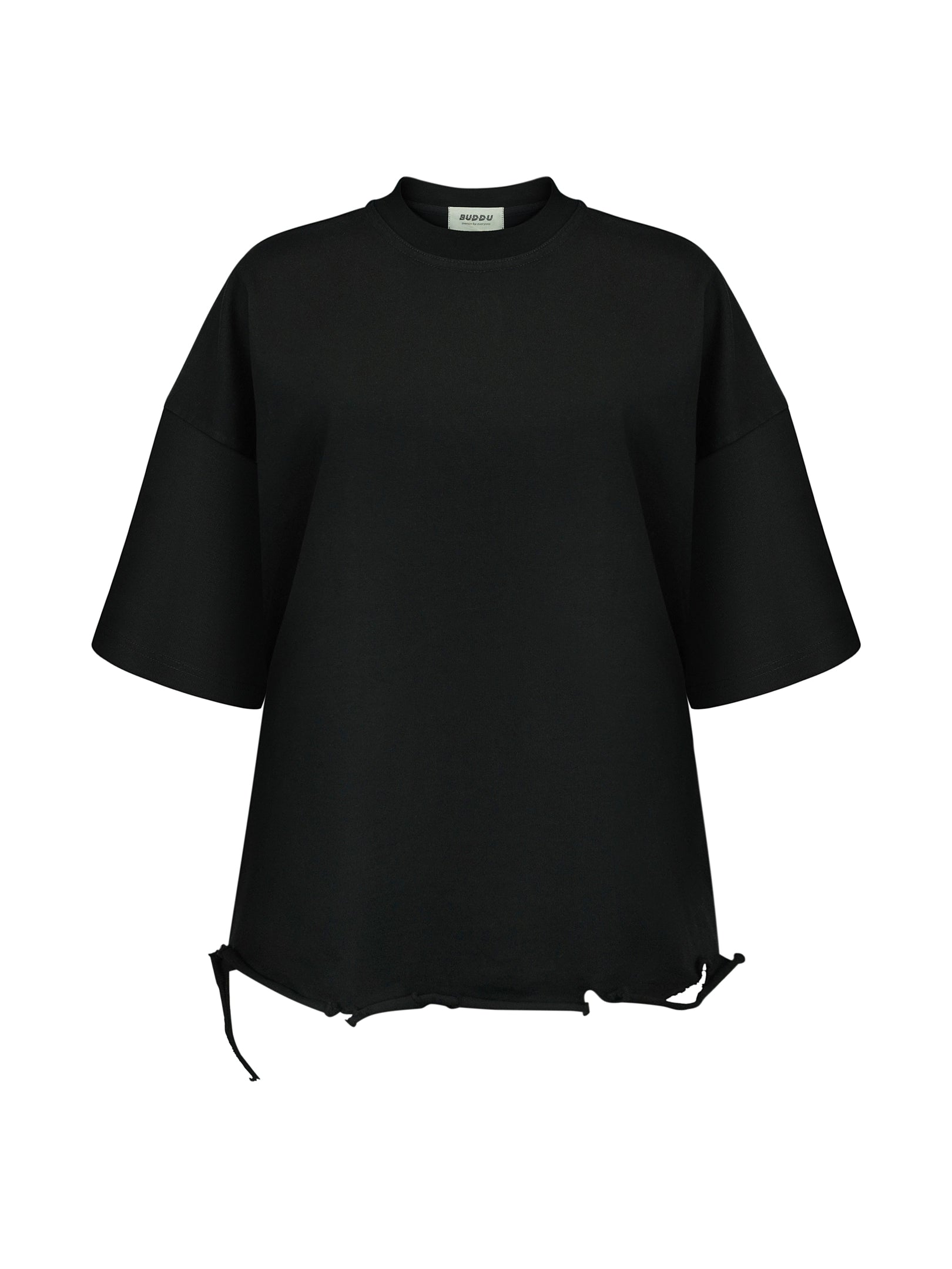 The basic T-shirt is soft natural cotton that provides comfort all day long, and light suffs add a bit of rebellious charm and character. Ideal for creating everyday bows.